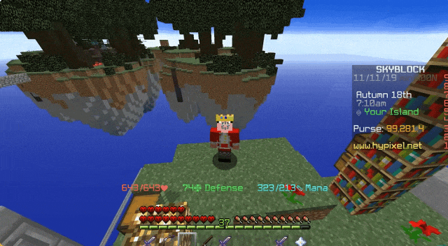 在反复去世无数此后,已经武装到牙齿的Techno破防了。他一怒之下跑回自己的小岛,在上面创建了一个固定刷怪点——玩家只需要在下面站着挥剑就可以。